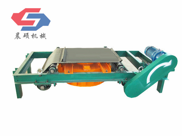 電磁除鐵器的基礎(chǔ)上增加了驅(qū)動電機、滾筒、帶刮板的缷鐵膠帶等組成的缷鐵機構(gòu)。在工作過程